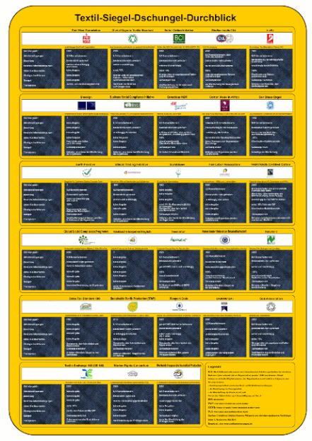 Zur besseren Übersicht habe ich aus dem Textil-Siegel Quartett ein Plakat gemacht. Dabei habe ich noch ein paar Rechtschreibfehler korrigiert und ein veraltetes Logo gegen ein